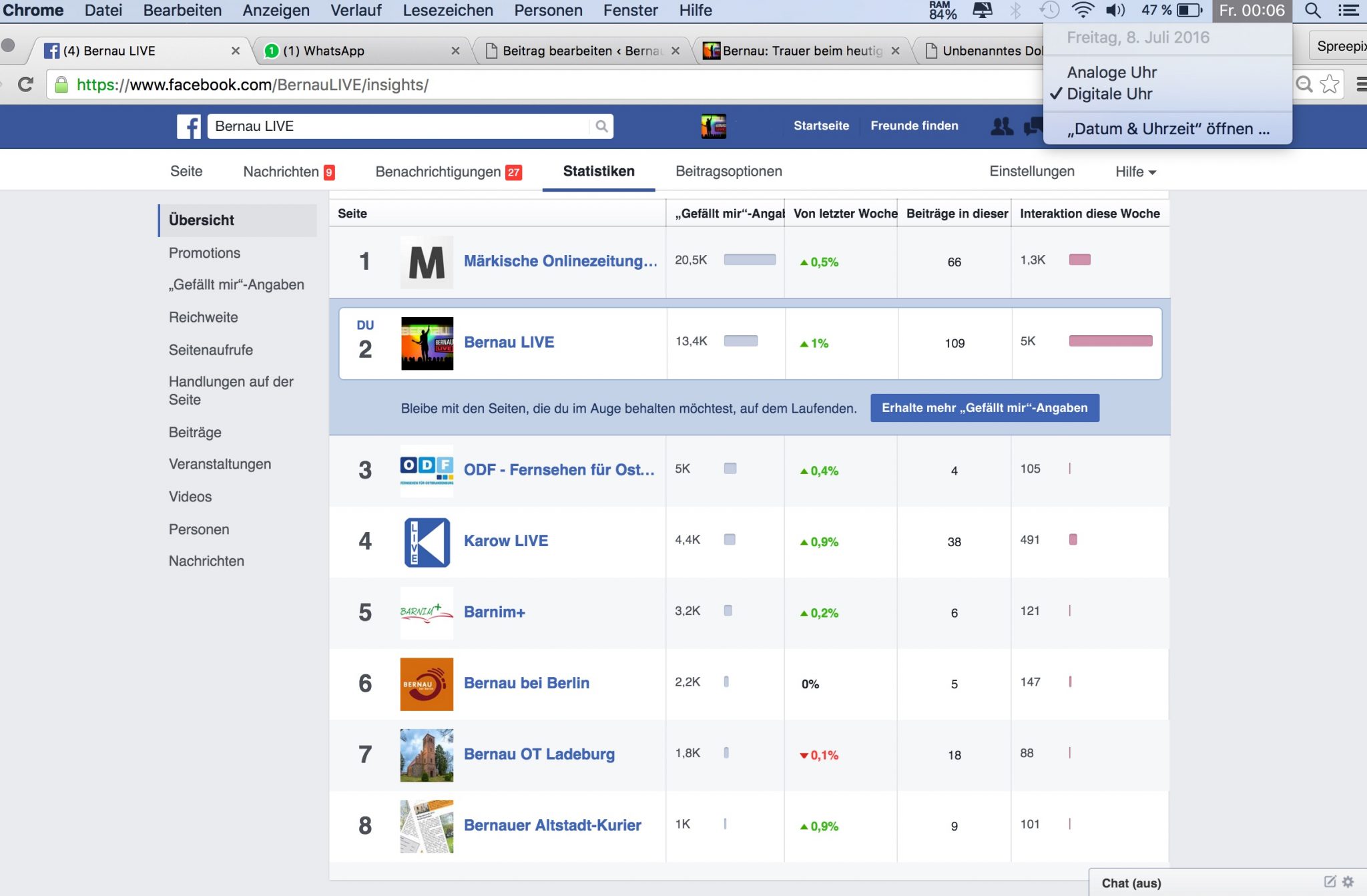 Damit liegt Bernau LIVE auch weiterhin mit Abstand weit über die Zugriffszahlen der von uns verglichenen Facebook-Seiten zusammen.
