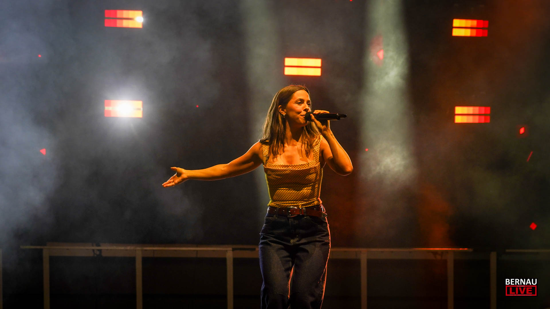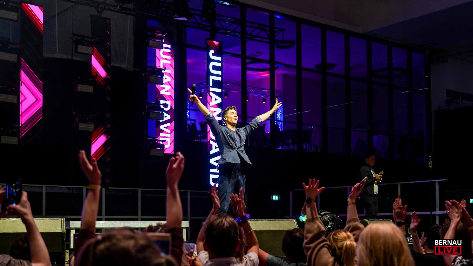 Gegen 20:00 Uhr erreichte die Stimmung einen ersten Höhepunkt, als Vanessa Mai gut gelaunt die Bühne betrat. Innerhalb weniger Augenblicke zog sie die Fans in ihren Bann. Ein Meer aus Smartphone-Lichtern begleitete ihre Performance, während das Publikum textsicher jeden Refrain mitsang. Die 45-minütige Show verging wie im Flug – und für eine Verschnaufpause am Getränkestand blieb kaum Zeit, da Julian David mit einem energiegeladenen Set aus Coversongs die Tanzfläche lückenlos füllte.