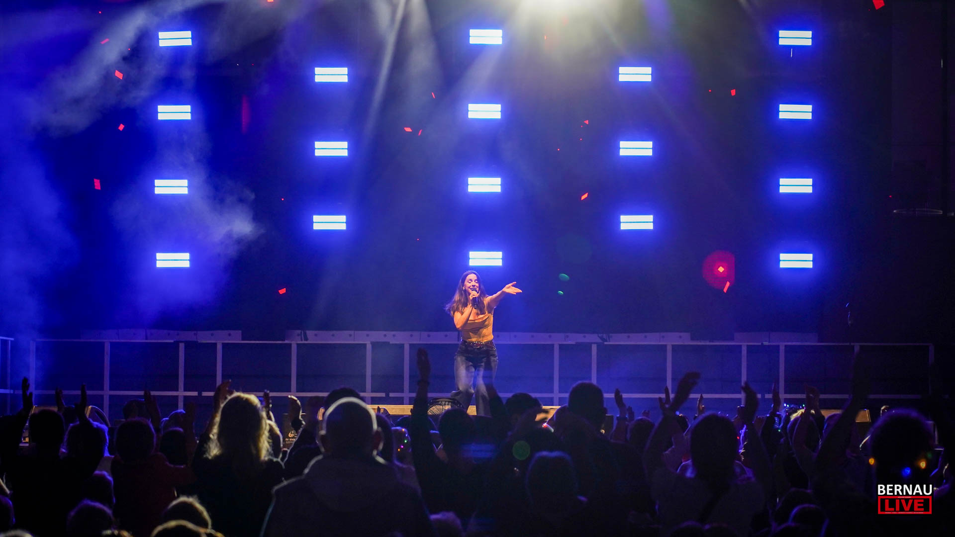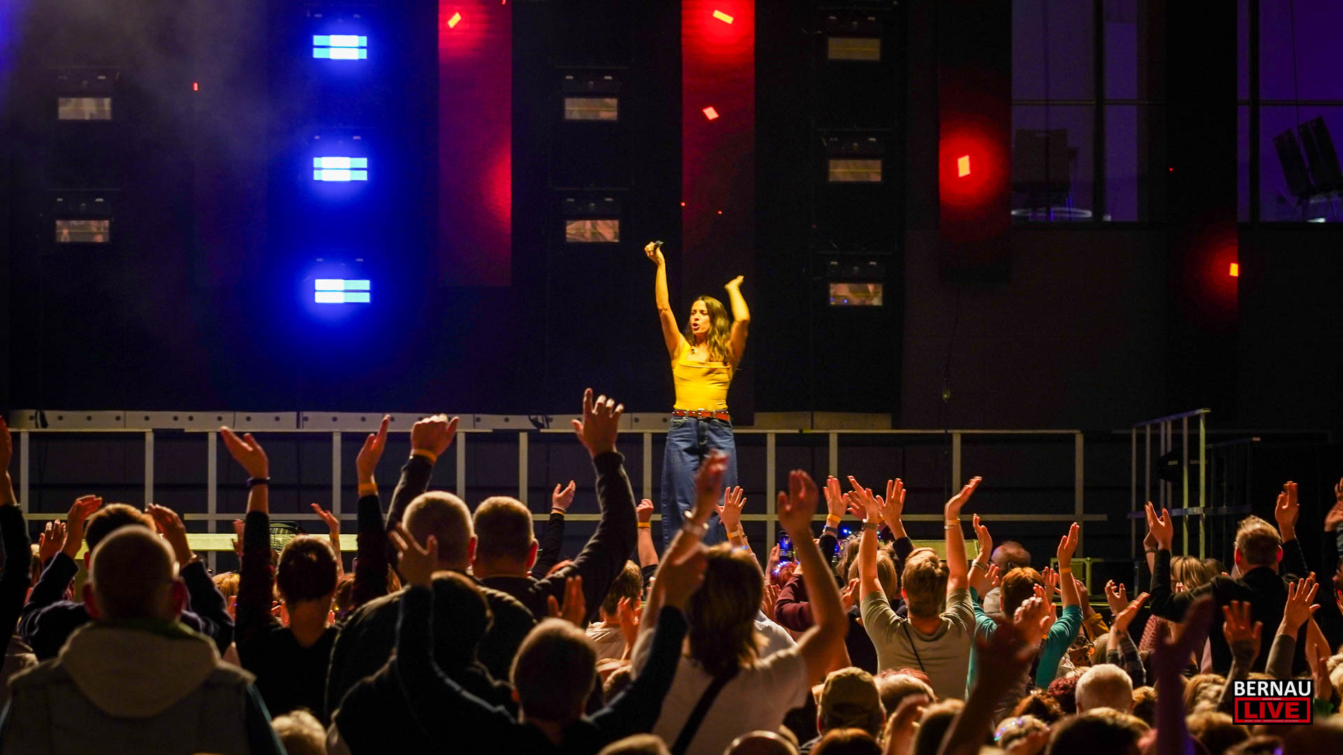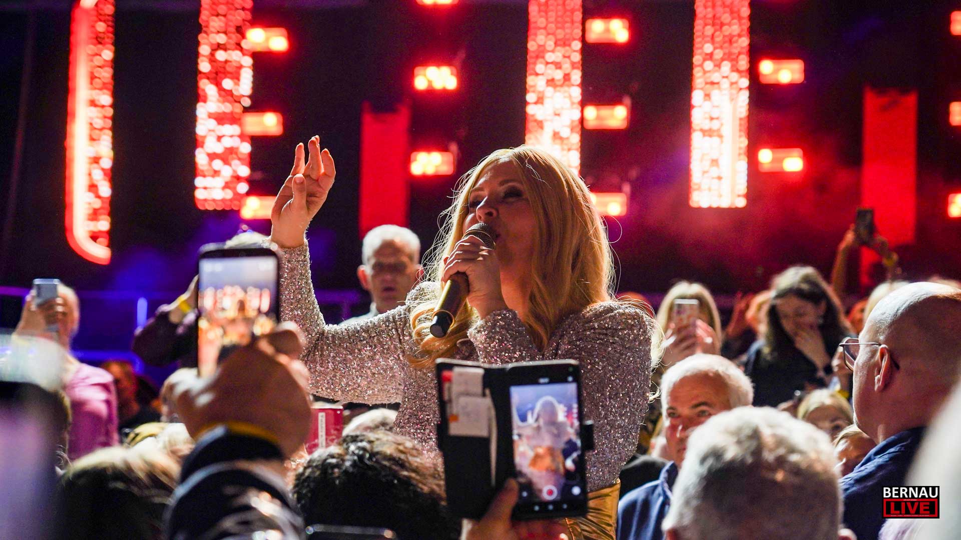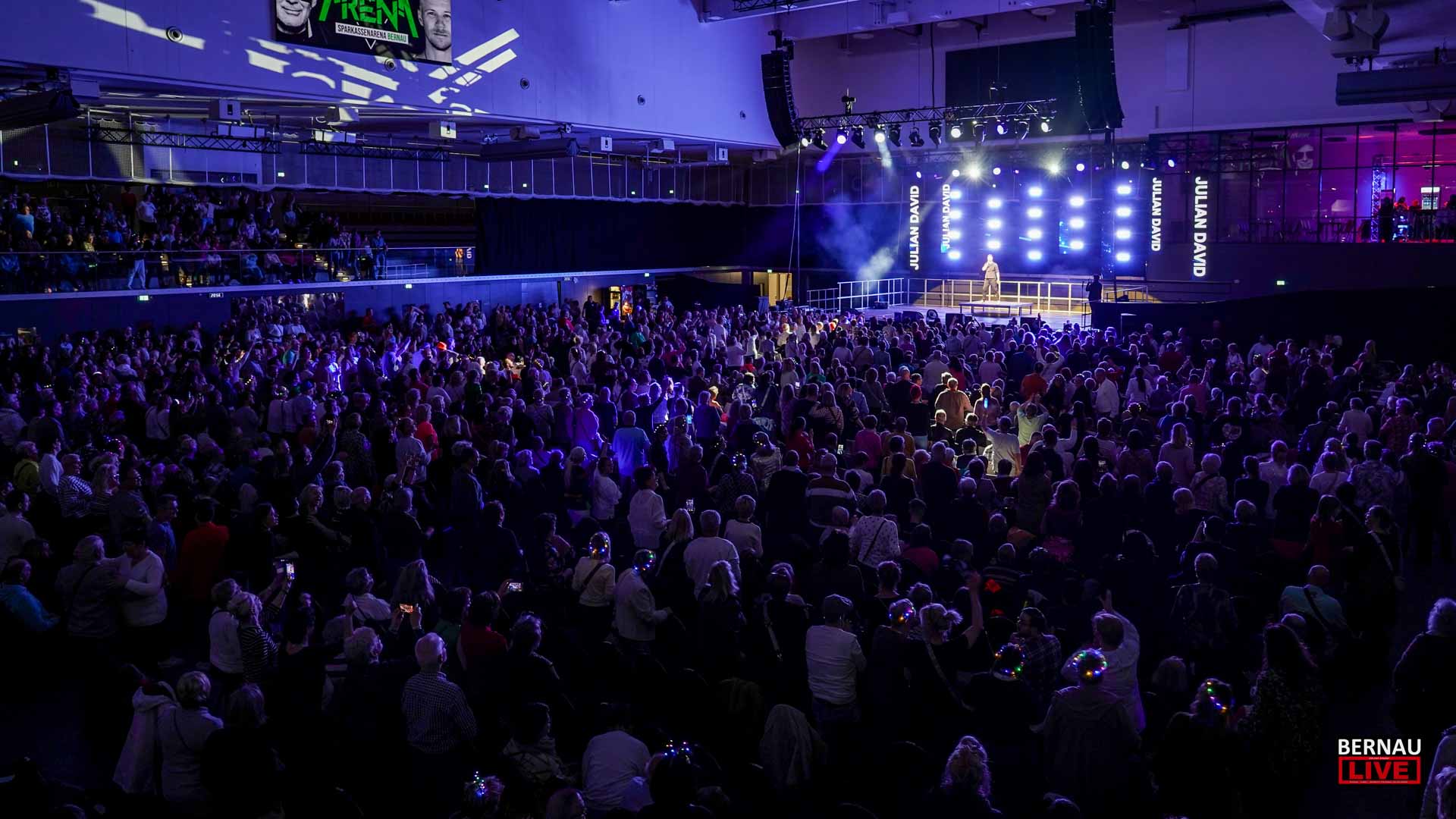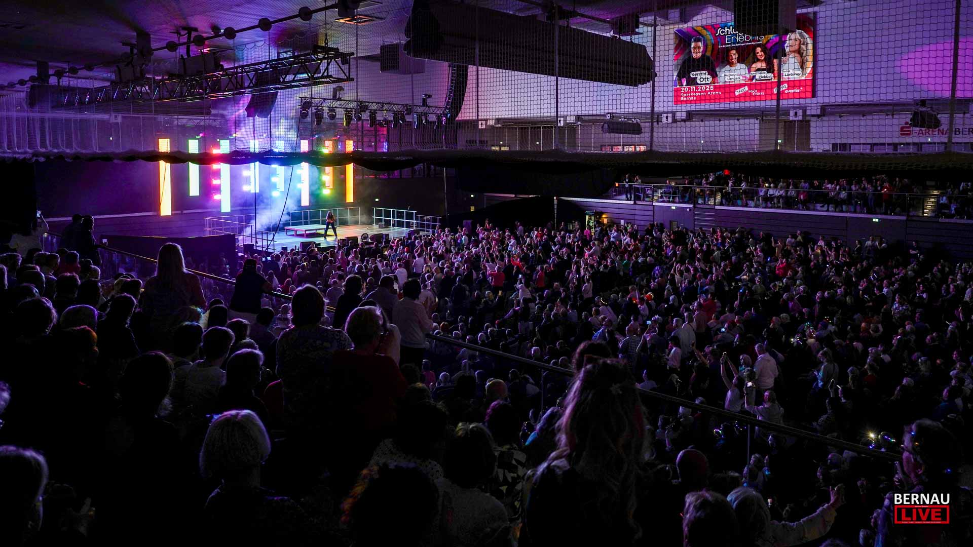 Schon weit vor Einlassbeginn zeigten die langen Warteschlangen vor den Türen: Die Vorfreude in Bernau war riesig. In der Arena übernahm Julian David die Rolle des charmanten Gastgebers und leitete ebenso charmant zu Tina Söllner über, die das Publikum mit ihren Hits umgehend auf Betriebstemperatur brachte. Mit glitzernden Krönchen im Haar und dem obligatorischen Aperol Spritz in der Hand tauchten die Gäste in eine ausgelassene Schlagernacht ein.