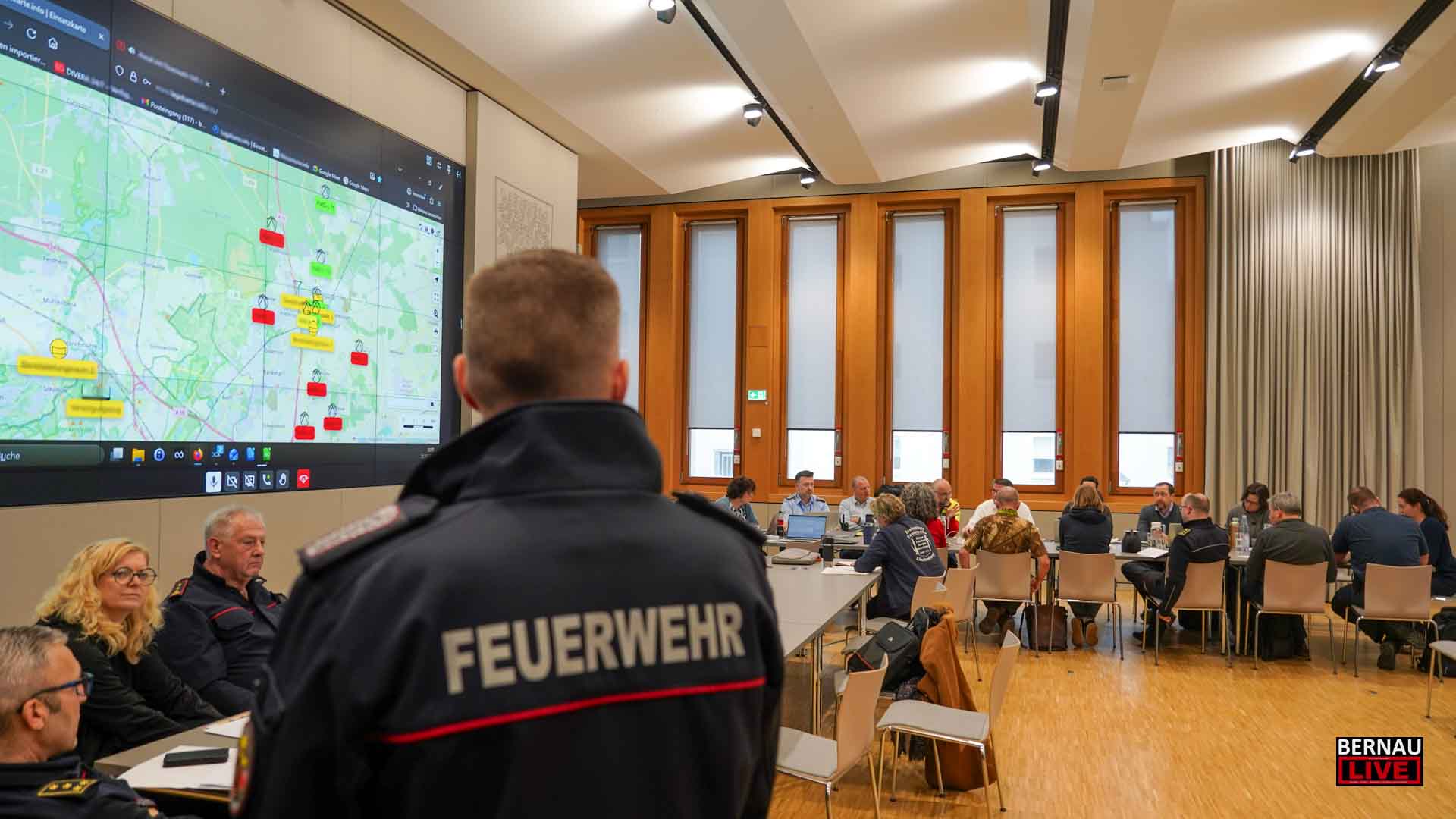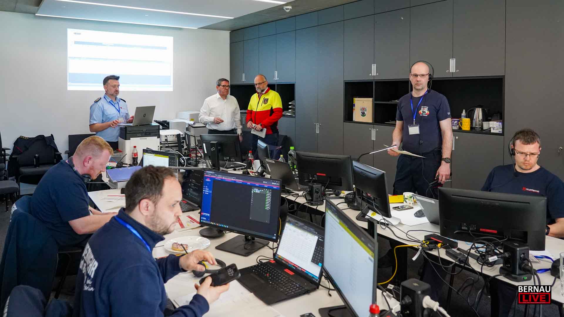 Ein zentraler Baustein der Krisenstrategie war die Inbetriebnahme der zehn sogenannten „Katastrophenschutz-Leuchttürme“. Diese Anlaufstellen wurden probeweise aufgebaut, mit Notstrom versorgt und dienten als Kommunikationsanker für die Bevölkerung. Auch die Schnelleinsatzgruppe (SEG) des Landkreises probte hier den Aufbau von Zelten und Notlager-Kapazitäten. Krisenstab wie auch die Einsatzleitung koordinierten und überwachten aus dem Neuen Rathaus jede noch so kleinste Aufgabe und Rettungsaktion.