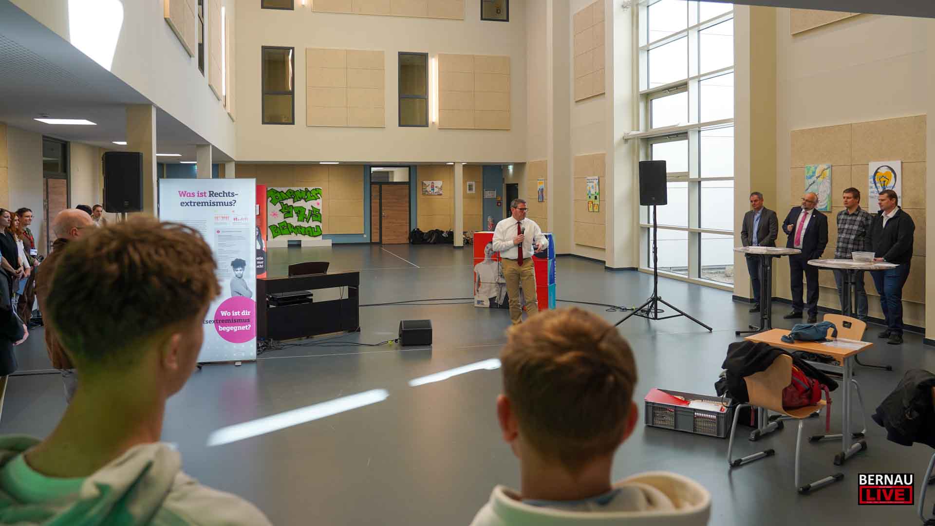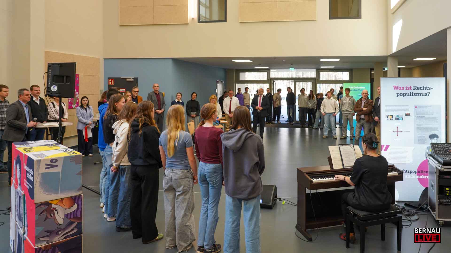 Bernau / Barnim: Das neue „Wohnzimmer“ des Barnim-Gymnasiums in Bernau-Waldfrieden wurde am gestrigen Vormittag zum Schauplatz einer gesellschaftspolitisch bedeutsamen Premiere: