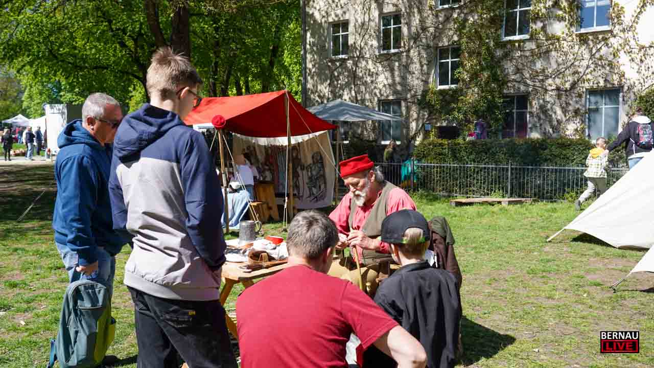 Die Tradition kam ebenfalls nicht zu kurz: In einer mittelalterlichen Schmiede bearbeitete Jan Mächtig glühendes Eisen, während am Spinnrad und an der Drechselbank von Kai Marquardt alte Techniken lebendig wurden. Für eine Brücke zum kommenden Hussitenfest (12. bis 14. Juni) sorgten die Bernauer Briganten. In ihrem Lager konnten sich große und kleine Schützen im Armbrustschießen üben.