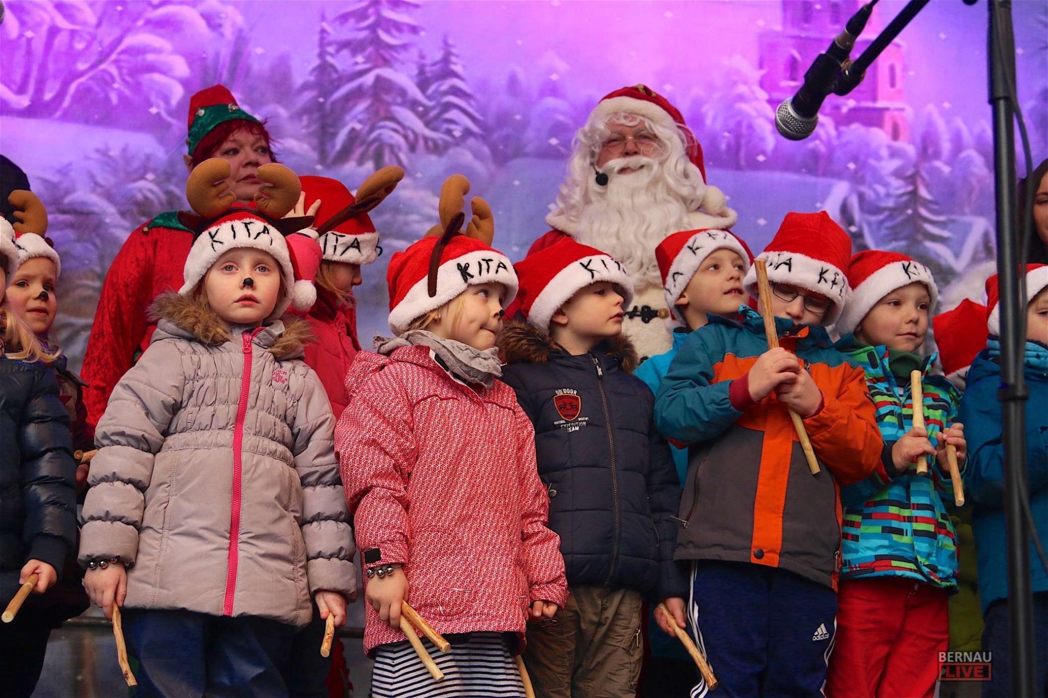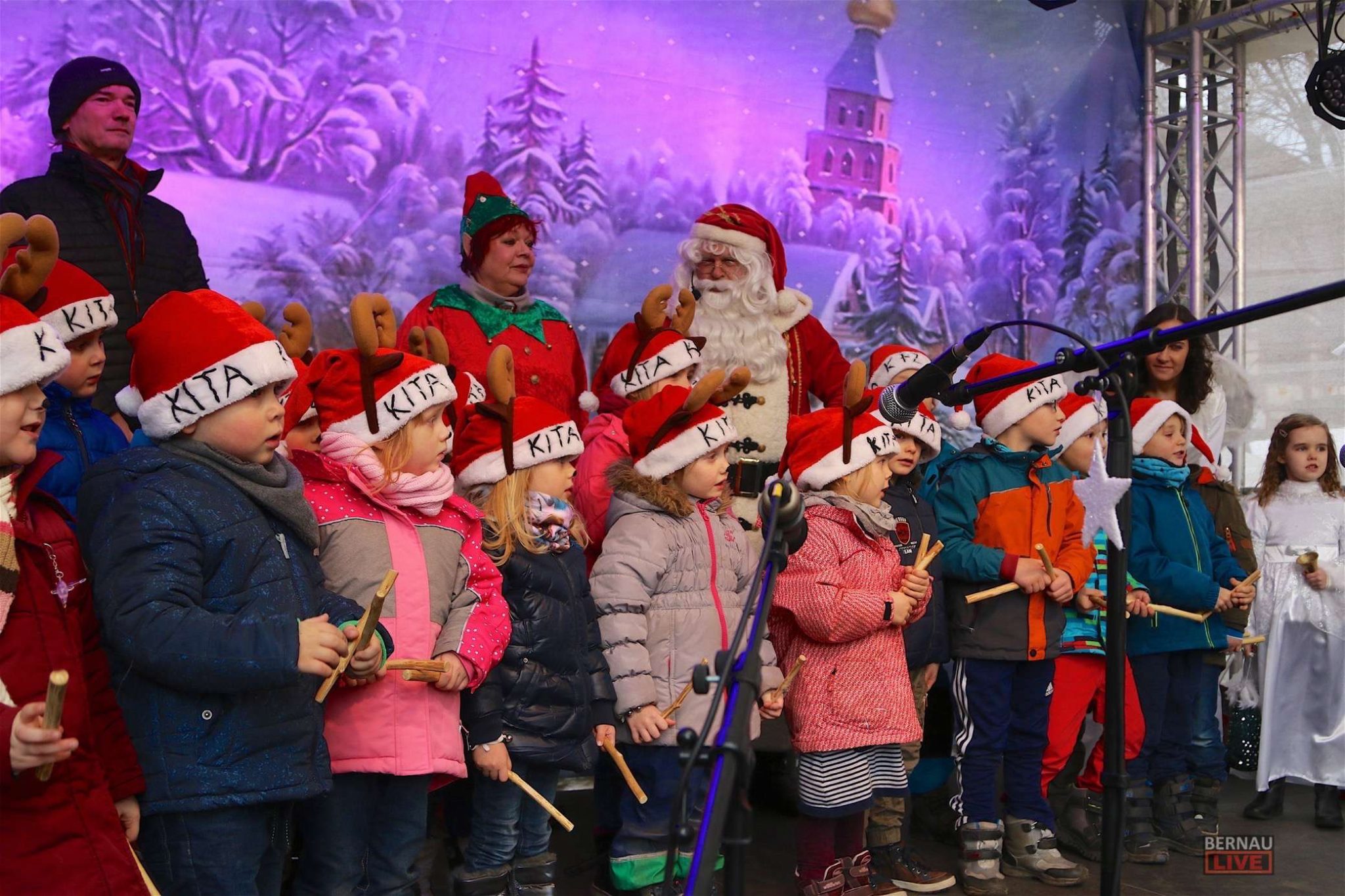 Nachdem Bürgermeister André Stahl und Stadtwerke Bernau – Geschäftsführerin Bärbel Köhler mit einigen Worten den Markt eröffneten, stimmten die Kinder des Kindergartens „Kreatives Freizeit Zentrum“ musikalisch die Weihnachtszeit ein.