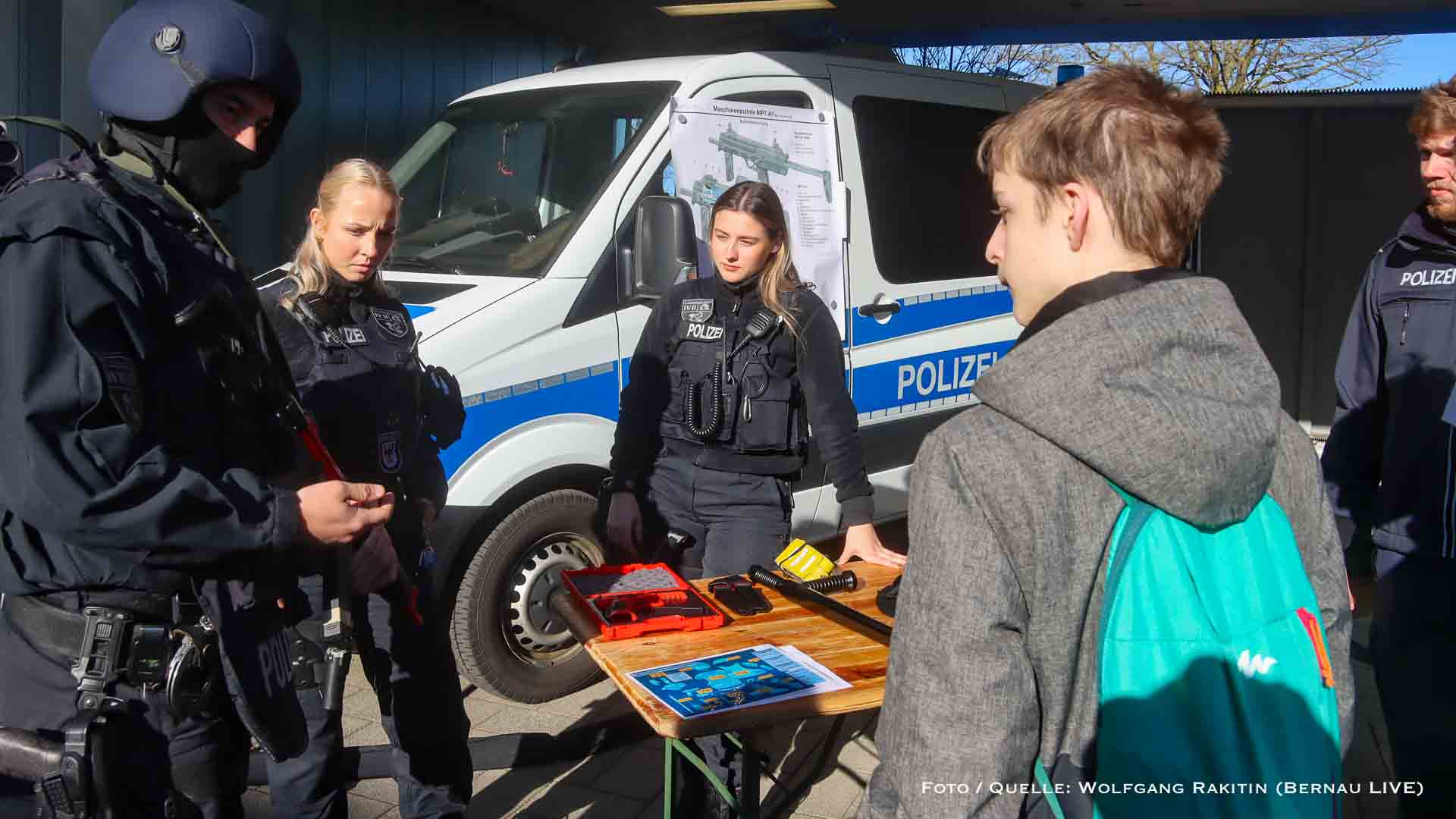 Die Polizei hatte für den Zukunftstag ein breit gefächertes Programm vorbereitet, das den Jugendlichen an verschiedenen Stationen einen lebendigen und spannenden Eindruck von ihrer Arbeit vermittelte. Ob Verkehrsüberwachung, Kampfmittelbeseitigung, Ausrüstung, Revierablauf, Spezialeinsatzkräfte oder die Vorstellung von Fahrzeug- und Waffentechnik – die Schülerinnen und Schüler konnten in zahlreiche Facetten des Polizeiberufs eintauchen. Informationen zur Ausbildung und Karrierechancen rundeten das Angebot ab. Die Möglichkeit, vieles selbst auszuprobieren und Fragen zu stellen, wurde rege genutzt.