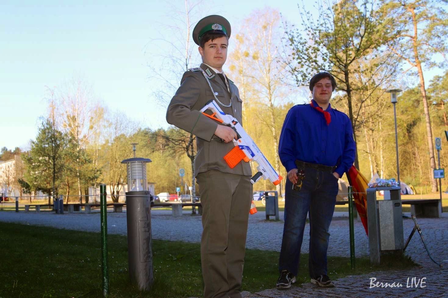 Etwa 25 Abiturienten fanden dies jedoch ziemlich cool und feierten fast die ganze Nacht, wir waren kurzzeitig LIVE dabei, im „Vorgarten“ des Barnim-Gymnasiums bevor sie am heutigen Morgen die Schule in eine russische Sektoren-Grenze der ehemaligen DDR verwandelten.