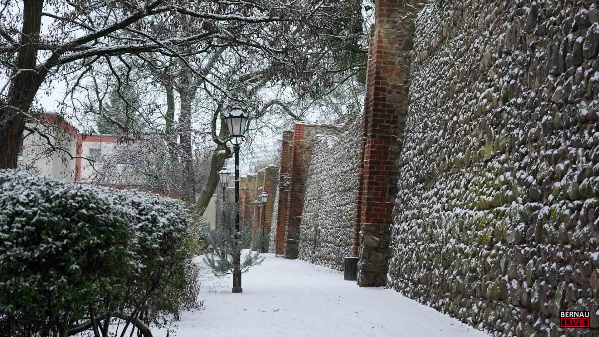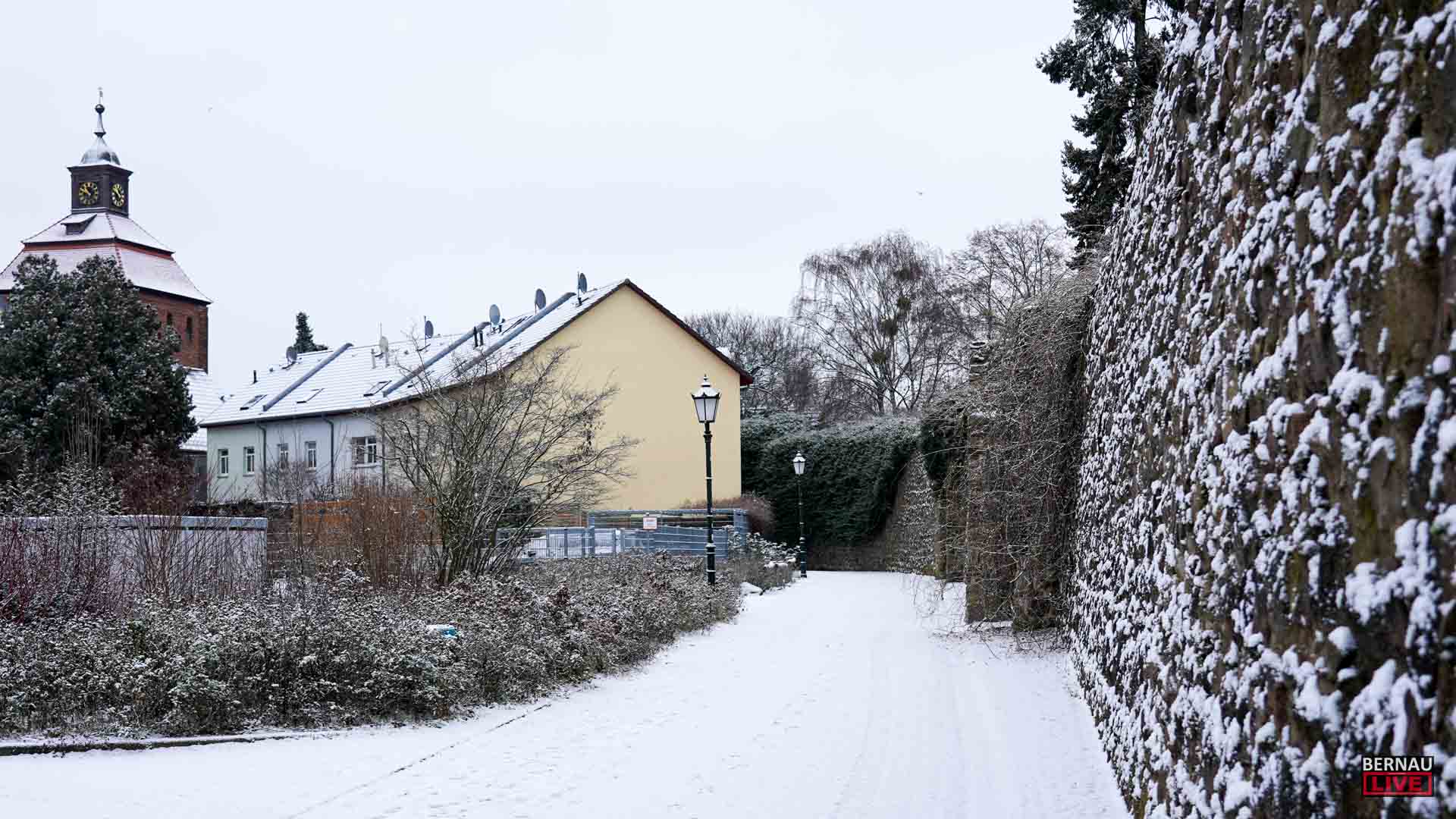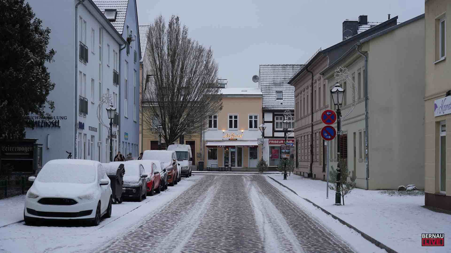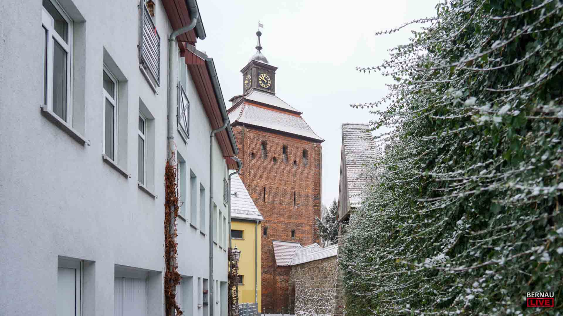 Bernau / Barnim: Pünktlich zum heutigen Silvestermorgen zeigte sich Bernau von seiner sanften Seite: Überraschend überzog der erste Schnee der Saison die Hussitenstadt mit einem feinen, weißen Schleier.
