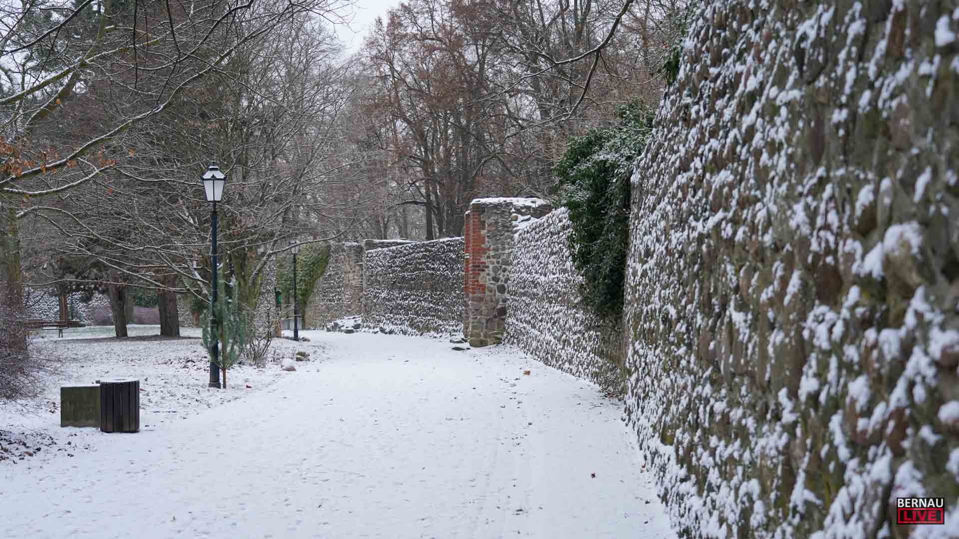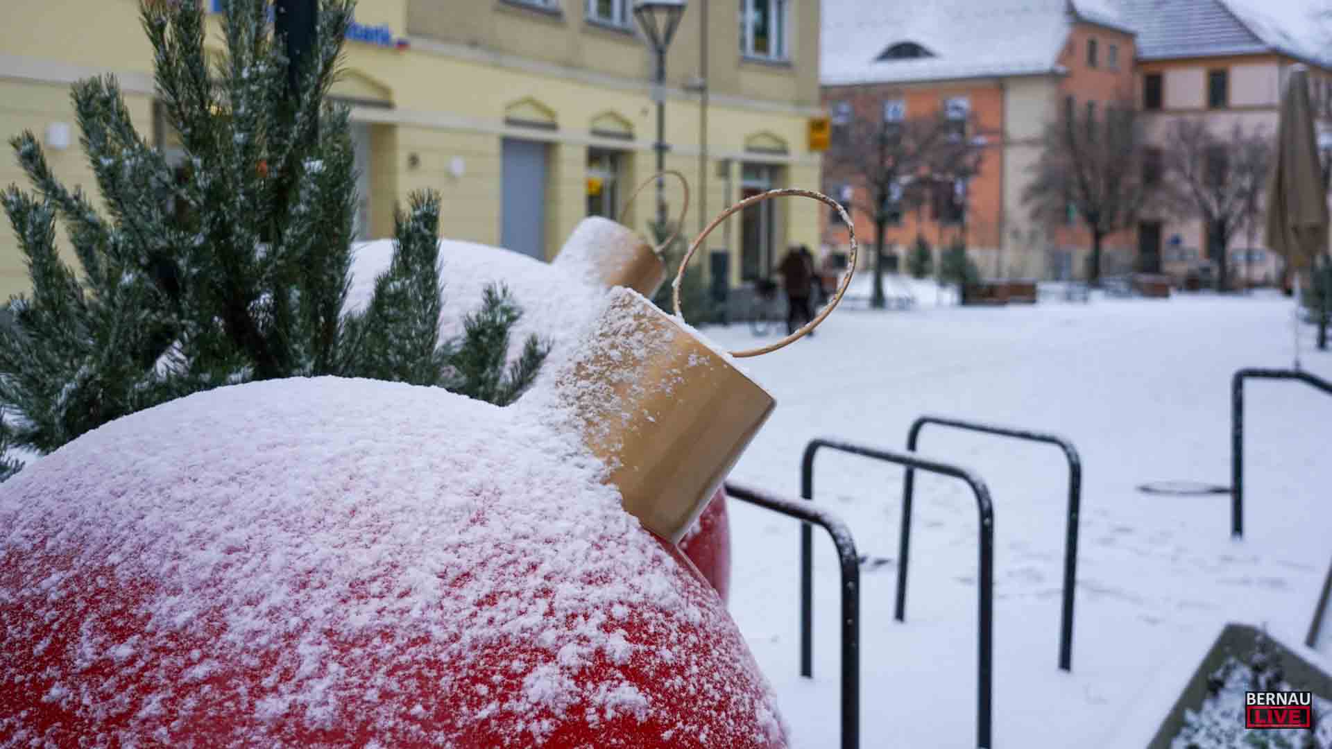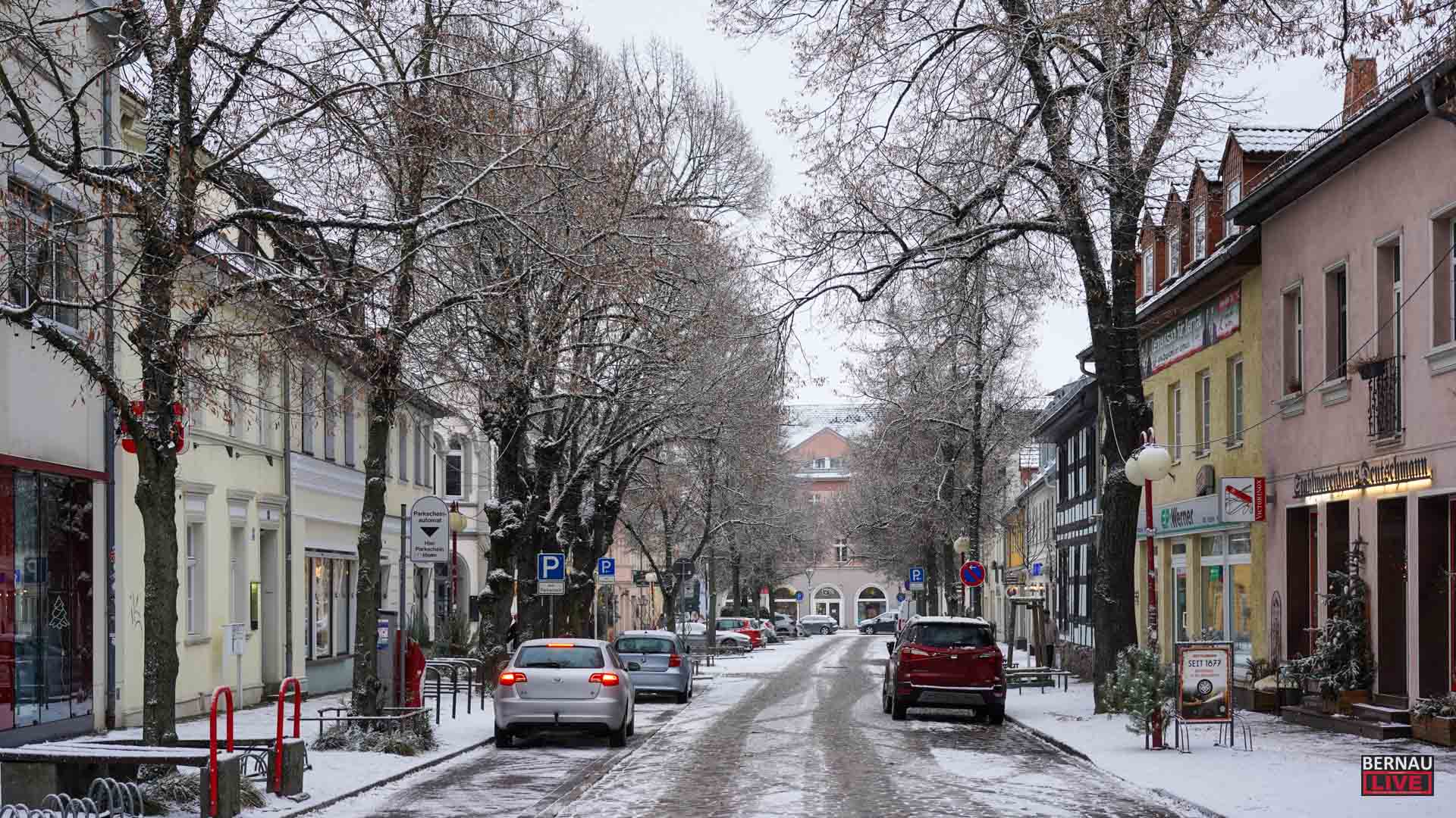 Bernau / Barnim: Pünktlich zum heutigen Silvestermorgen zeigte sich Bernau von seiner sanften Seite: Überraschend überzog der erste Schnee der Saison die Hussitenstadt mit einem feinen, weißen Schleier.