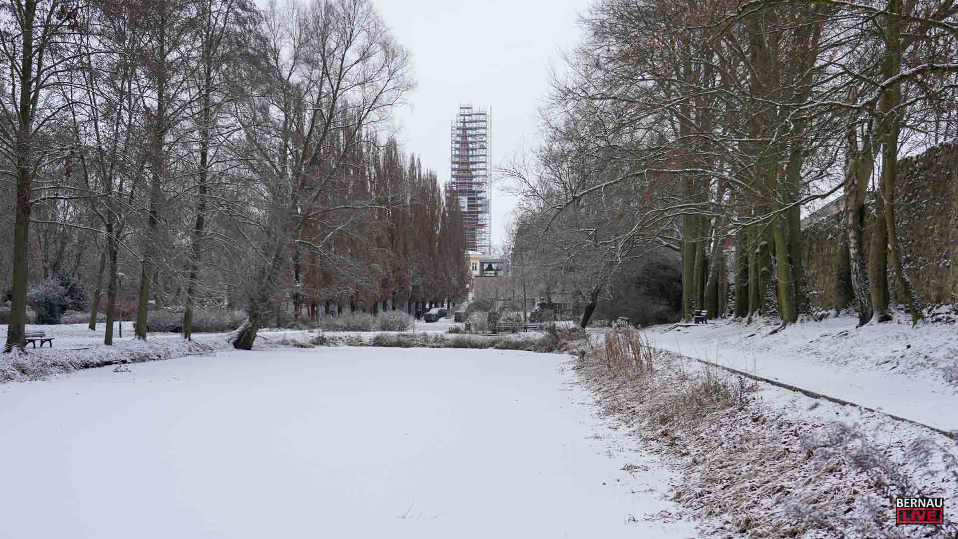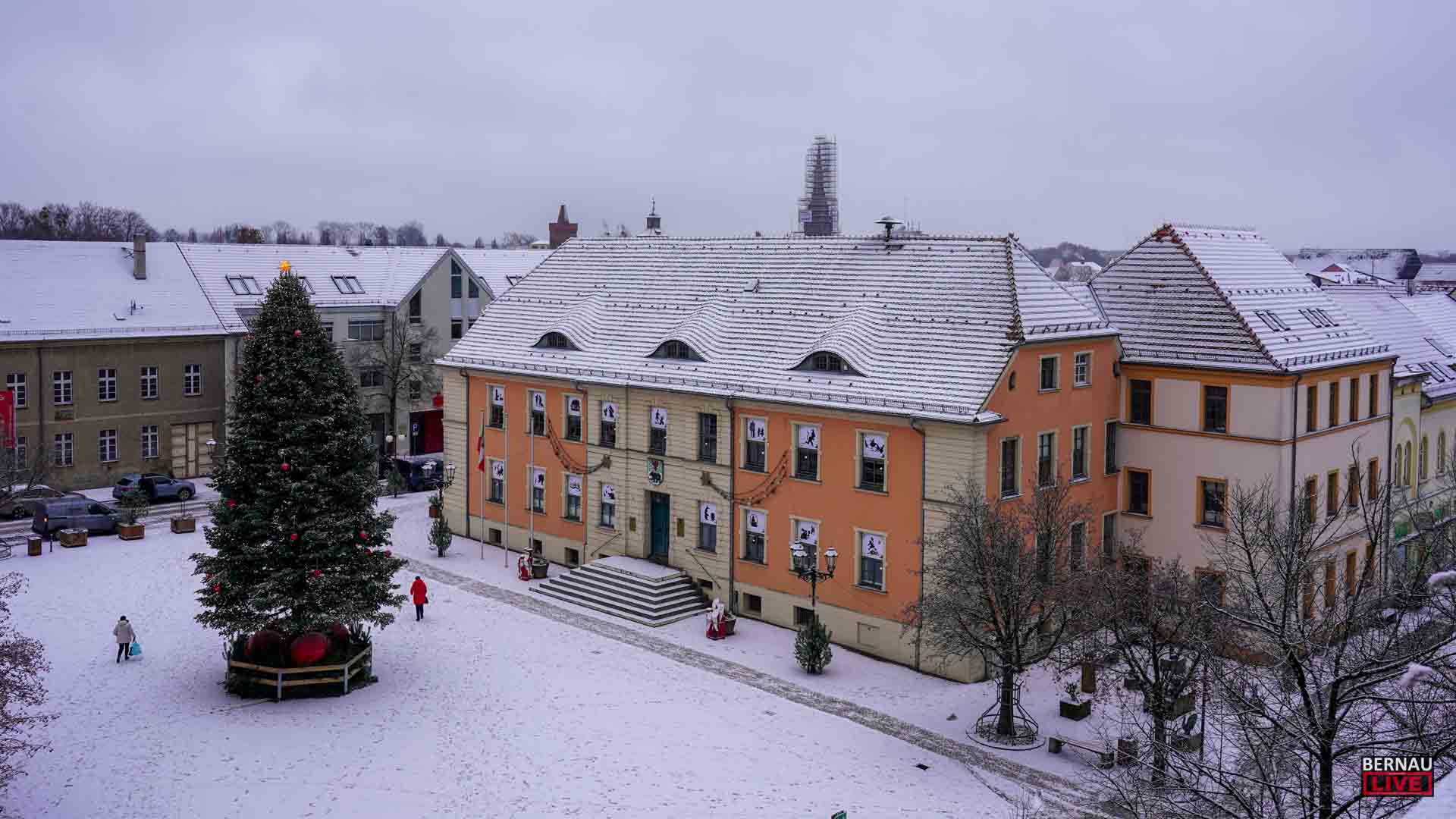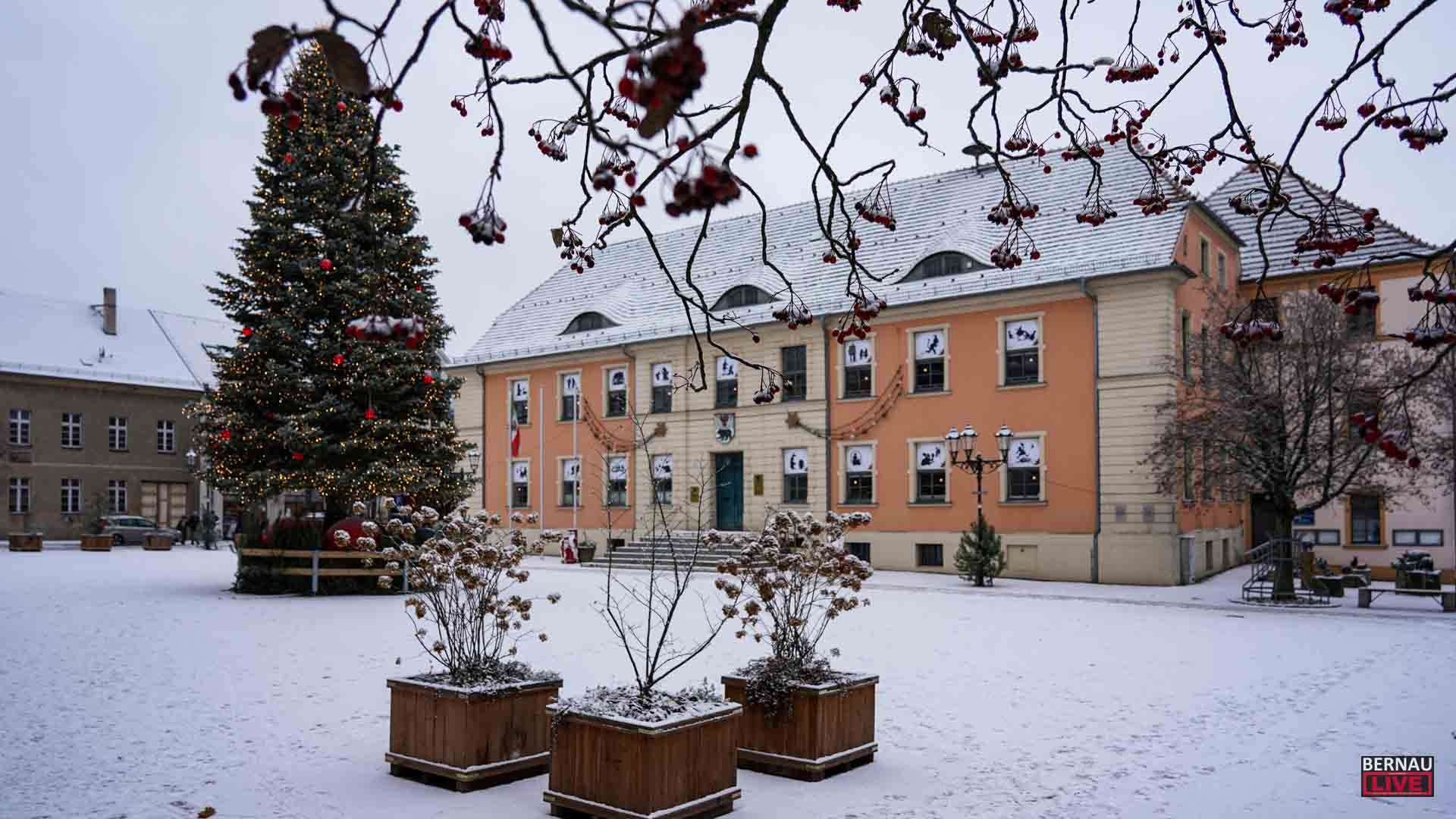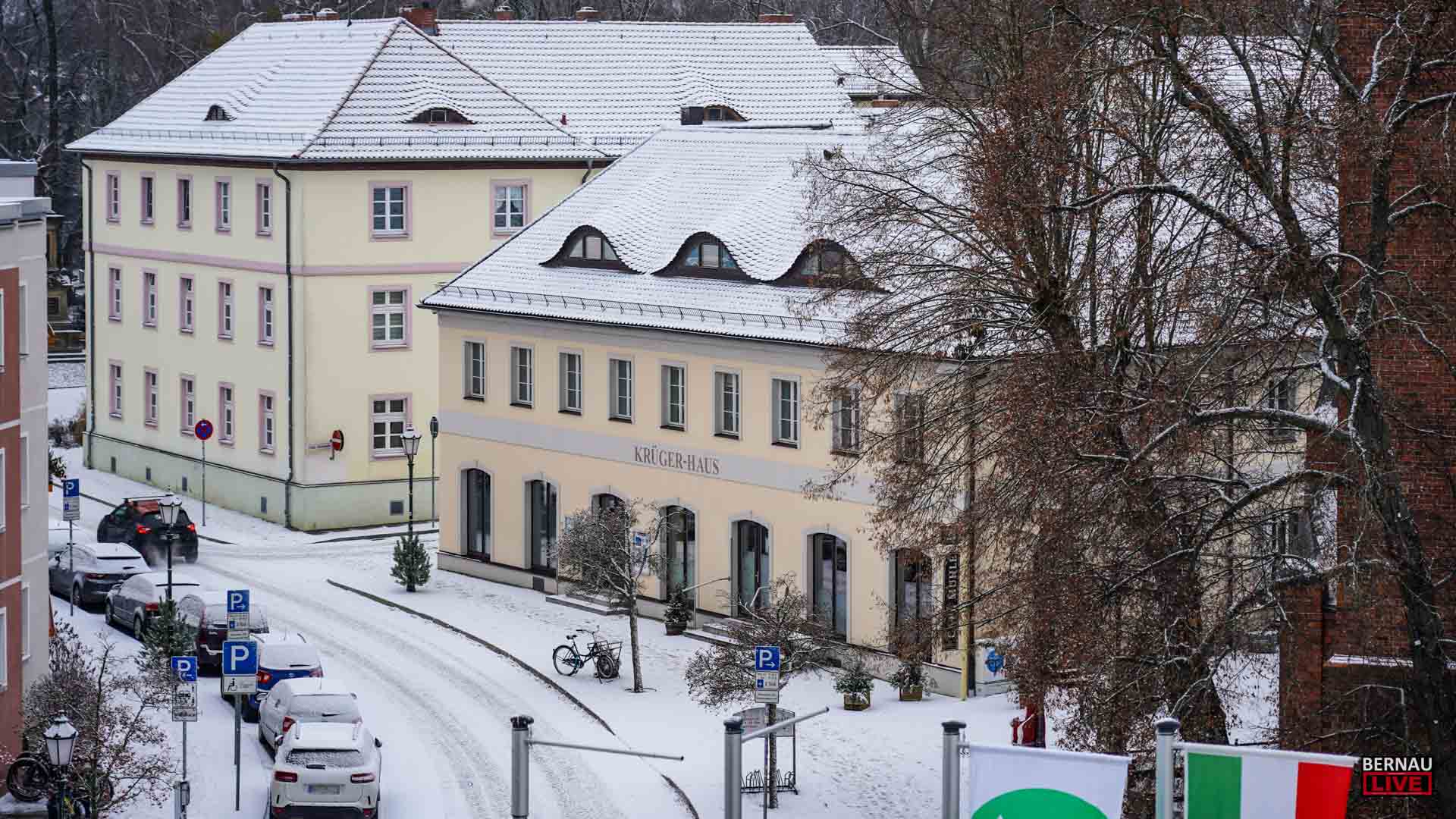Bernau / Barnim: Pünktlich zum heutigen Silvestermorgen zeigte sich Bernau von seiner sanften Seite: Überraschend überzog der erste Schnee der Saison die Hussitenstadt mit einem feinen, weißen Schleier.