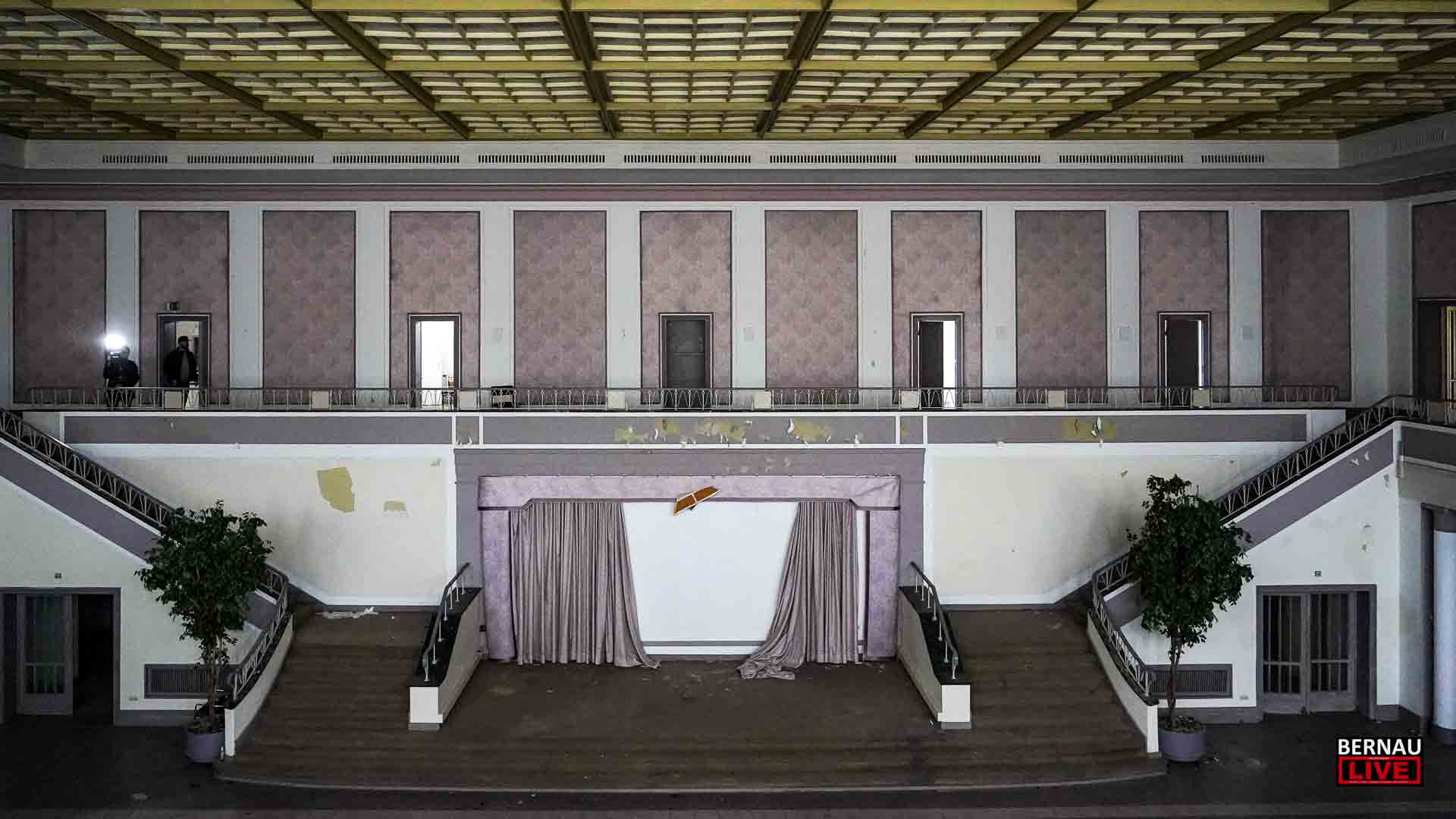 Die Lage auf dem Bogensee-Areal hat sich um Mitternacht dramatisch zugespitzt. Das gesamte Hauptgebäude steht mittlerweile in Vollbrand. Die Flammen haben den großen Saal, die Bühne sowie die ehemaligen Sprecherkabinen vollständig erfasst. Trotz eines massiven Aufgebots an Einsatzkräften erweisen sich die Löschwasserreserven angesichts der enormen Brandintensität als unzureichend. Das Feuer schlägt ungehindert vom Erdgeschoss bis durch den Dachstuhl. Ein Stück Geschichte verbrennt – man ist den Tränen nahe!