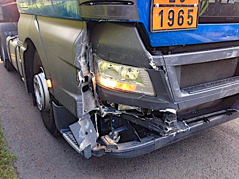Ein Gefahrguttransporter ist auf einem Pkw aufgefahren. 2 Personen wurden beim Zusammenstoß verletzt. Der Lkw, zumindest die gefährliche Beladung, blieb unbeschädigt.