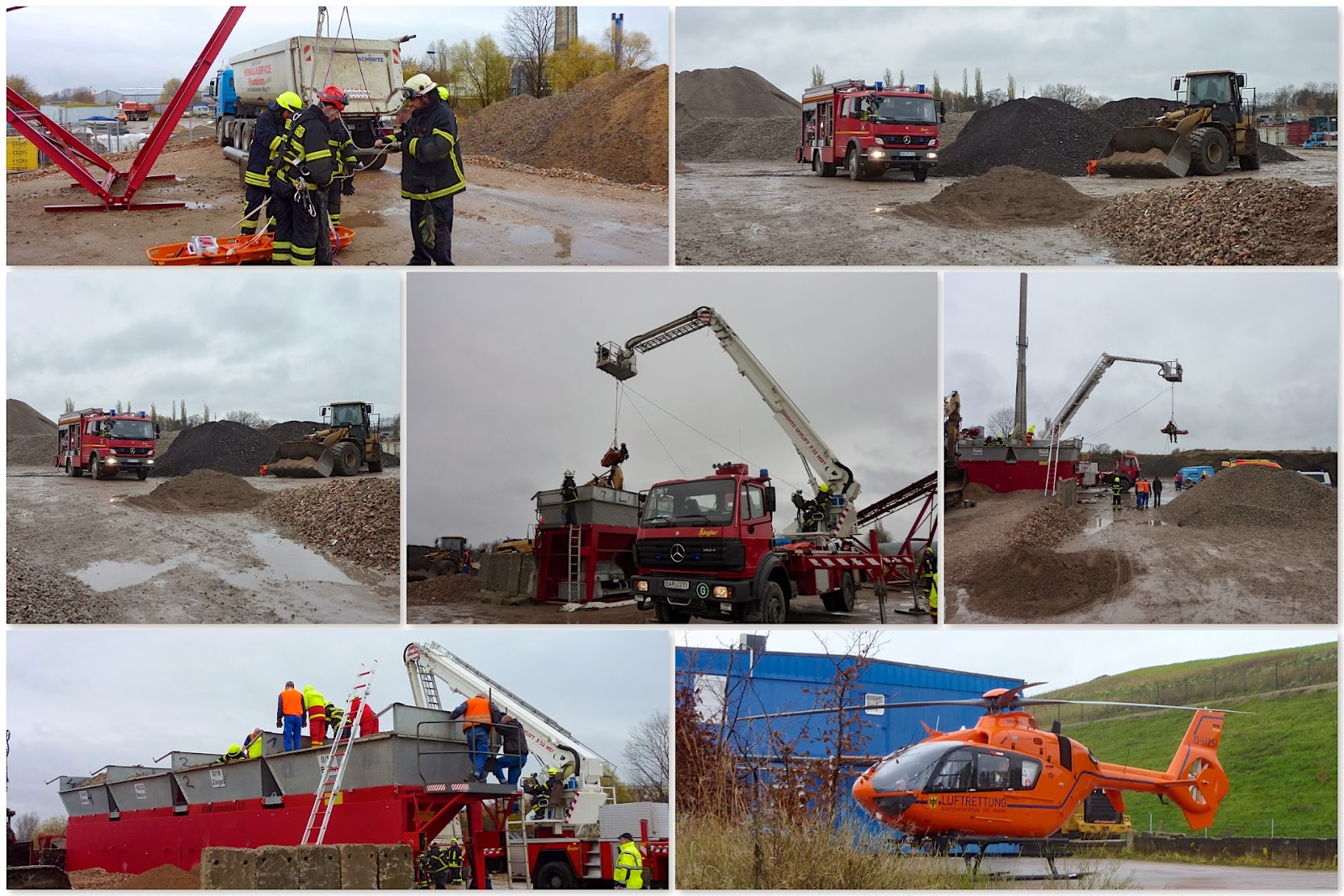 Ein zufällig anwesender Lkw Fahrer hörte die Hilfeschreie des Verschütteten und fand ihn in der Anlage. Er alarmierte sofort Feuerwehr, Rettungsdienst und Notarzt.