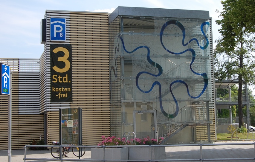 Da sich das offensichtlich noch nicht so herumgesprochen hat, macht die Stadt jetzt auf einer großen Plane darauf aufmerksam. In dem dreigeschossigen Gebäude an der Ecke Eberswalder und Börnicker Straße stehen 130 Stellplätze zur Verfügung.