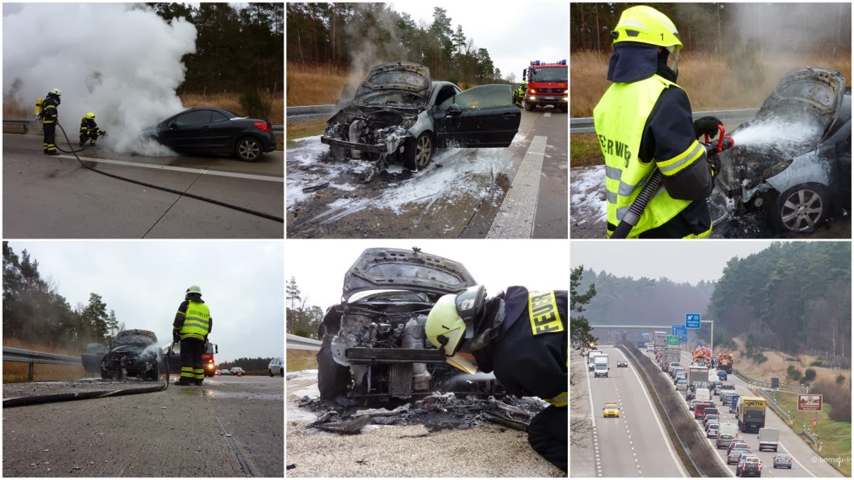Grund dafür war ein brennendes Auto. Kurz vor 11 Uhr war ein älterer Herr mit seinem Auto auf der BAB 11 in Fahrtrichtung Prenzlau unterwegs, als er plötzlich Rauch aus dem Motorraum bemerkte. Ihm gelang es das Fahrzeug auf der Standspur anzuhalten und sich in Sicherheit zu bringen, bevor der Peugeot im Frontbereich in Flammen aufging.
