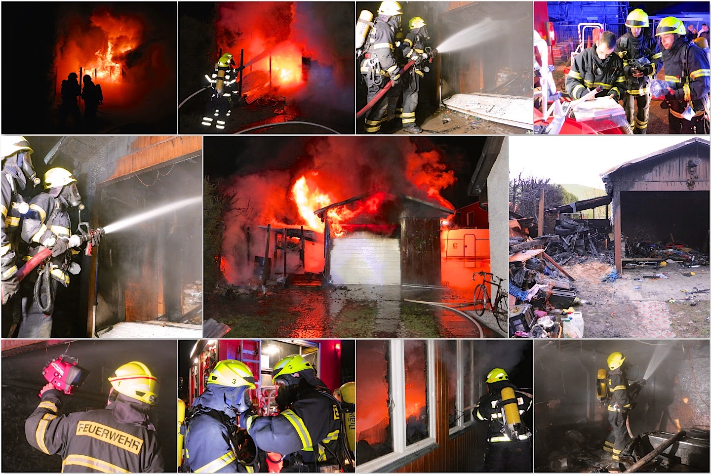 Trotz der umfangreichen Löscharbeiten mit 2 Rohren brannte die Garage vollständig aus. Personen wurden glücklicherweise nicht verletzt. Wie es zu dem Brand gekommen ist, wird zurzeit durch die Polizei ermittelt.