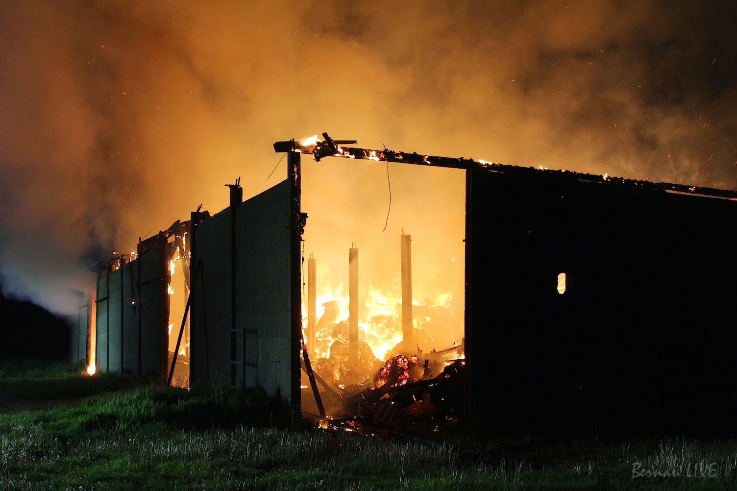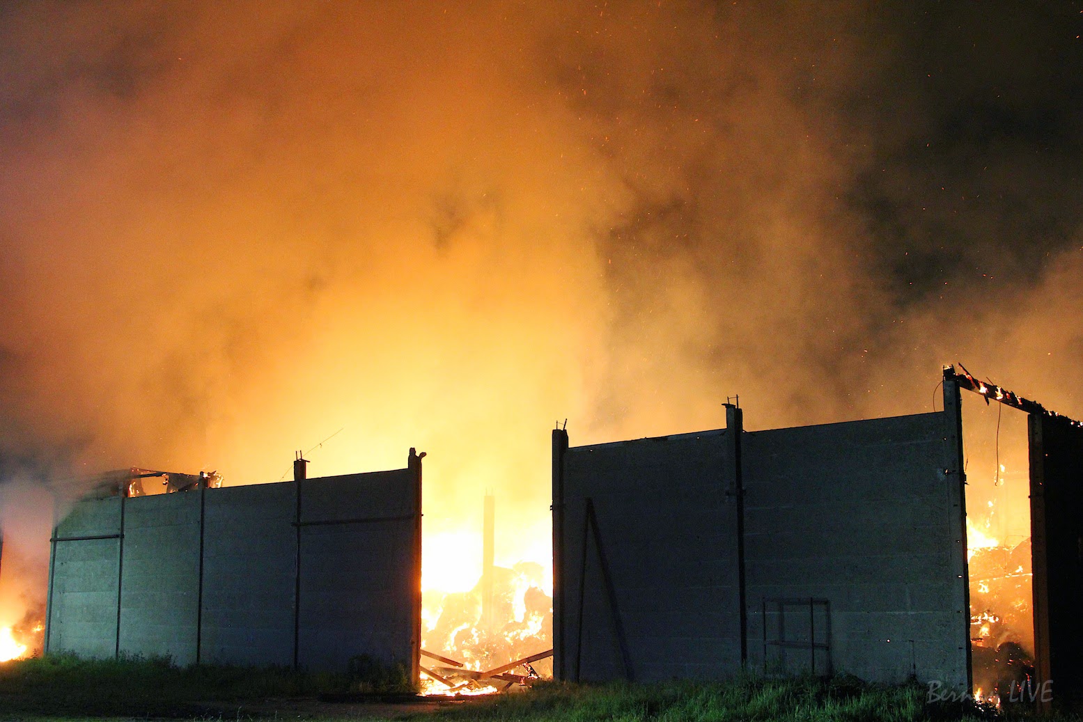 Dort brannte eine massive Scheune, bzw. die darin befindlichen Strohballen. Die Ursache ist bisher unklar.
