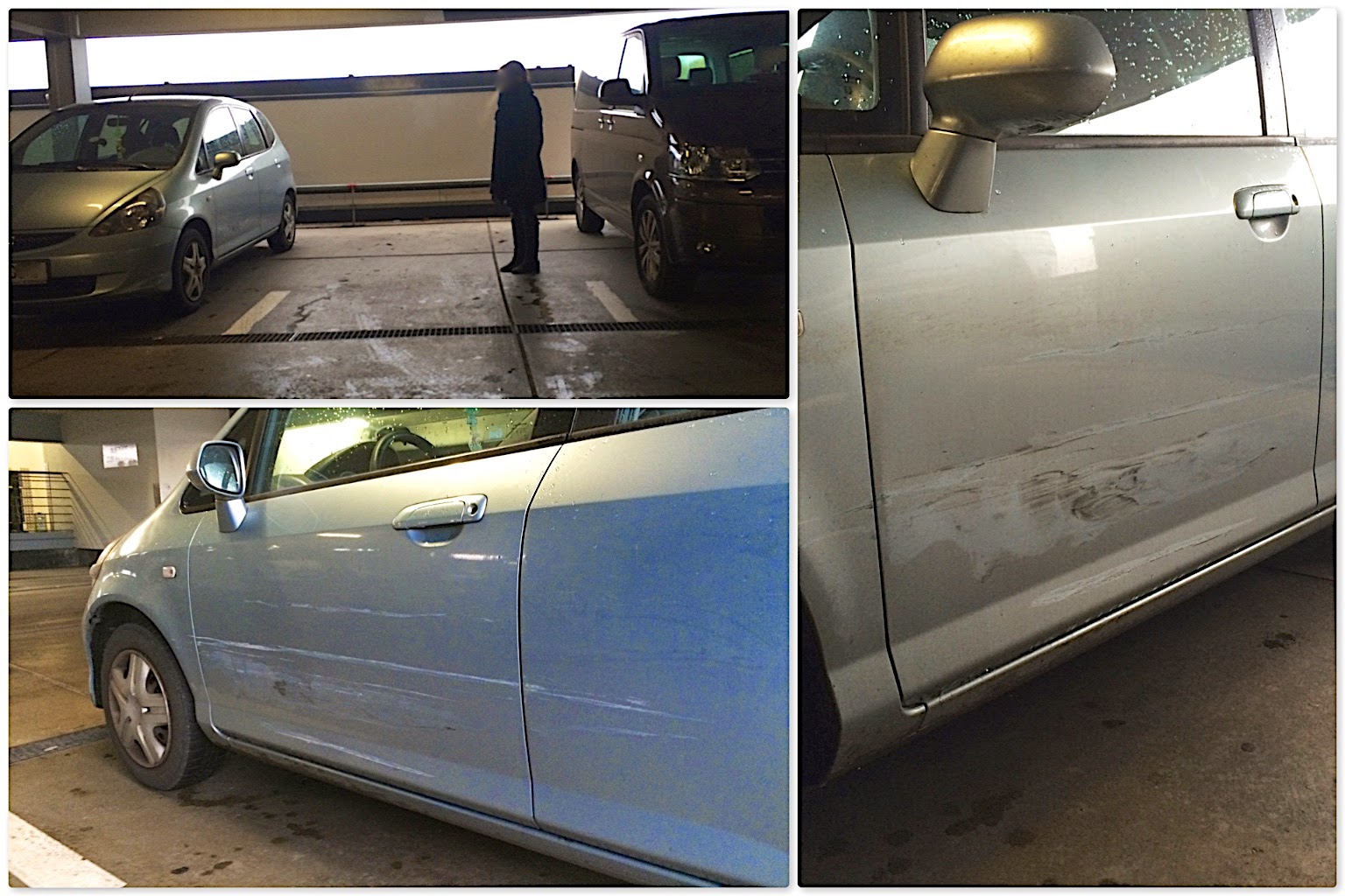 Bereits zum zweiten Mal wurde ihr parkendes Auto innerhalb eines halben Jahres beschädigt, ohne dass sich der Verursacher gemeldet hat oder den Schaden angezeigt hat.