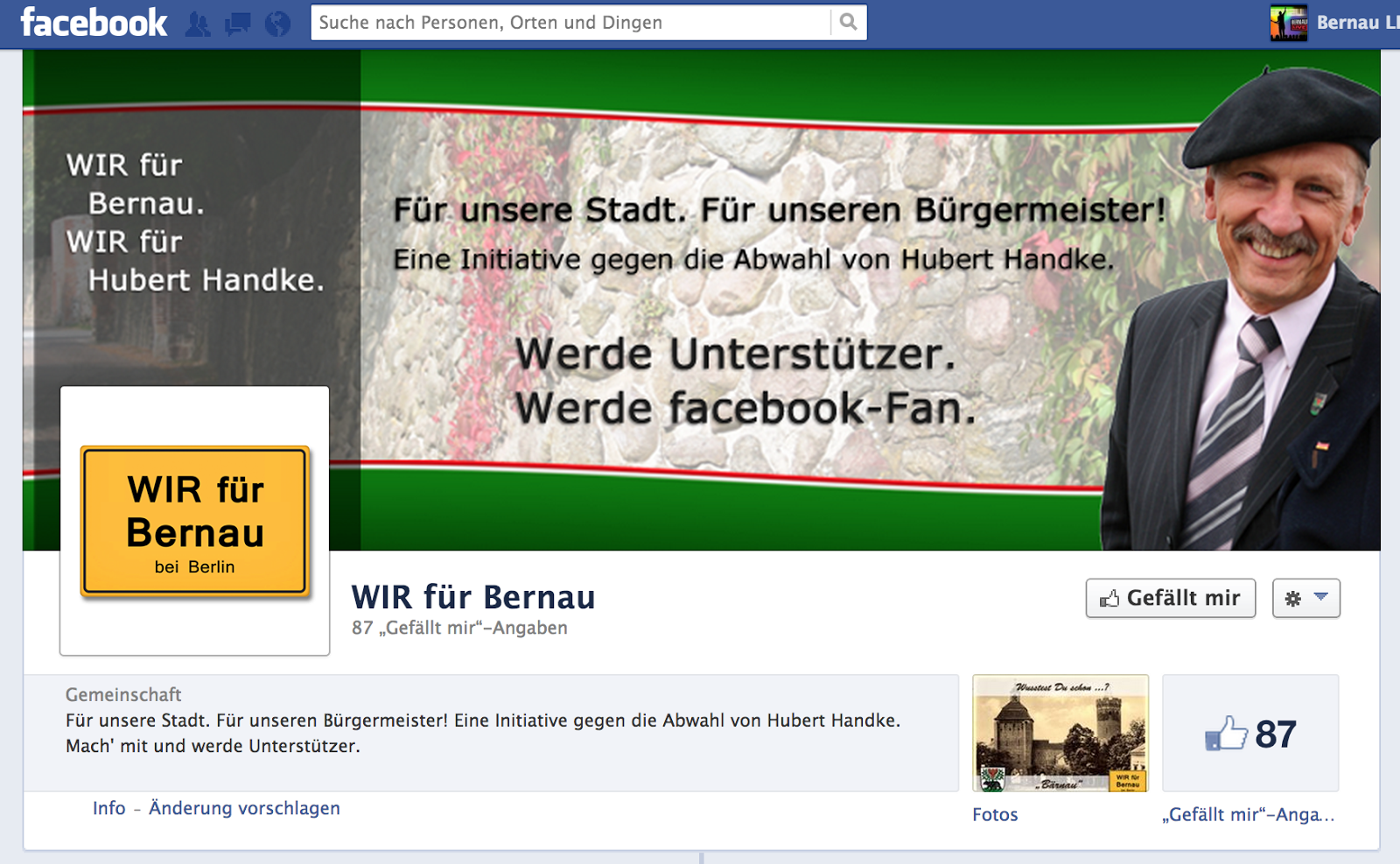Durch unsere Leser sind wir am heutigen Montag auf eine neue Facebook-Seite gestossen auf der gegen die Abwahl unseres Bürgermeisters Hubert Handke aufgerufen wird.