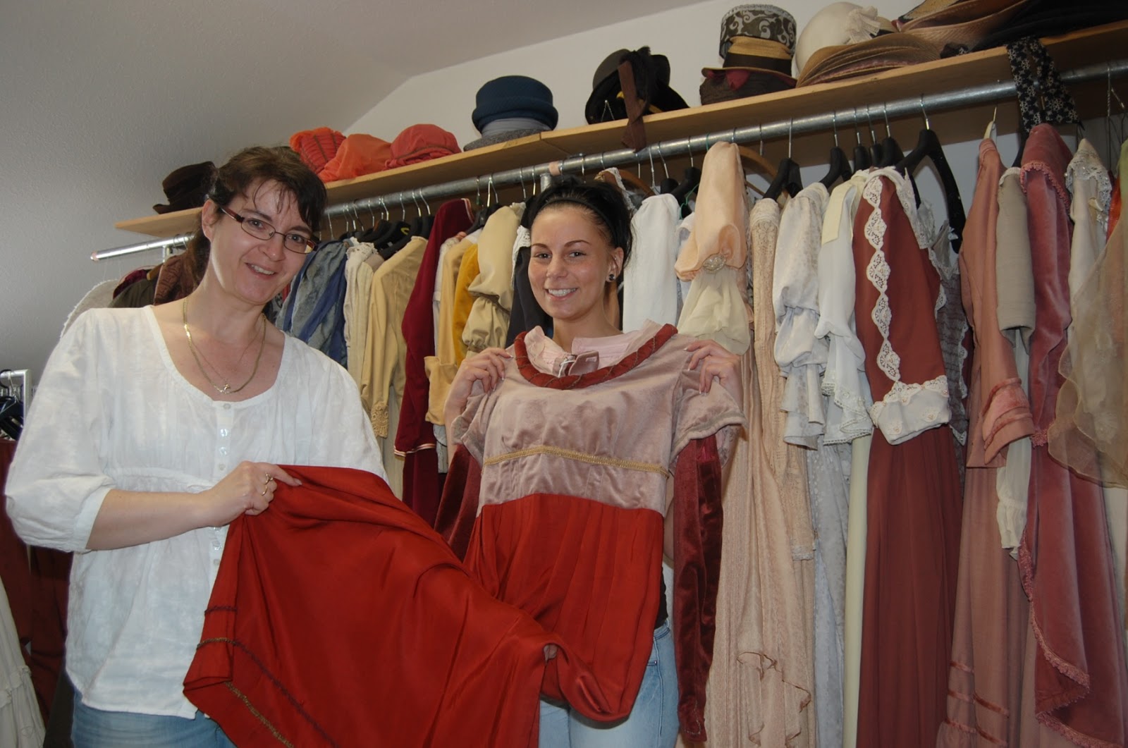 Foto: Babett Bartkowiak berät Melanie Jitschin bei der Kostümauswahl via Pressestelle Bernau /cf