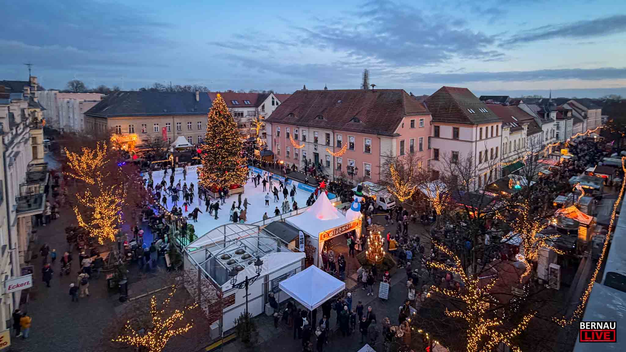 Der Marktplatz avancierte zum zentralen Anziehungspunkt: Hier drehte sich alles um die Eisbahn und bot rundherum weitere Verpflegungsmöglichkeiten. In wundervoller Beleuchtung wiesen Tausende Lämpchen in den Baumkronen den Weg vom Neuen Rathaus in Richtung Kirchplatz, wo der mittelalterliche Markt zum Verweilen einlud und Zeit für etwas Ruhe bot. Für die jüngeren Besucher sorgte der kleine Rummel am Mühlentor für strahlende Augen. Kleinkunst, magische Fabelwesen oder der Bernauer Weihnachtsmann ergänzten das Angebot.