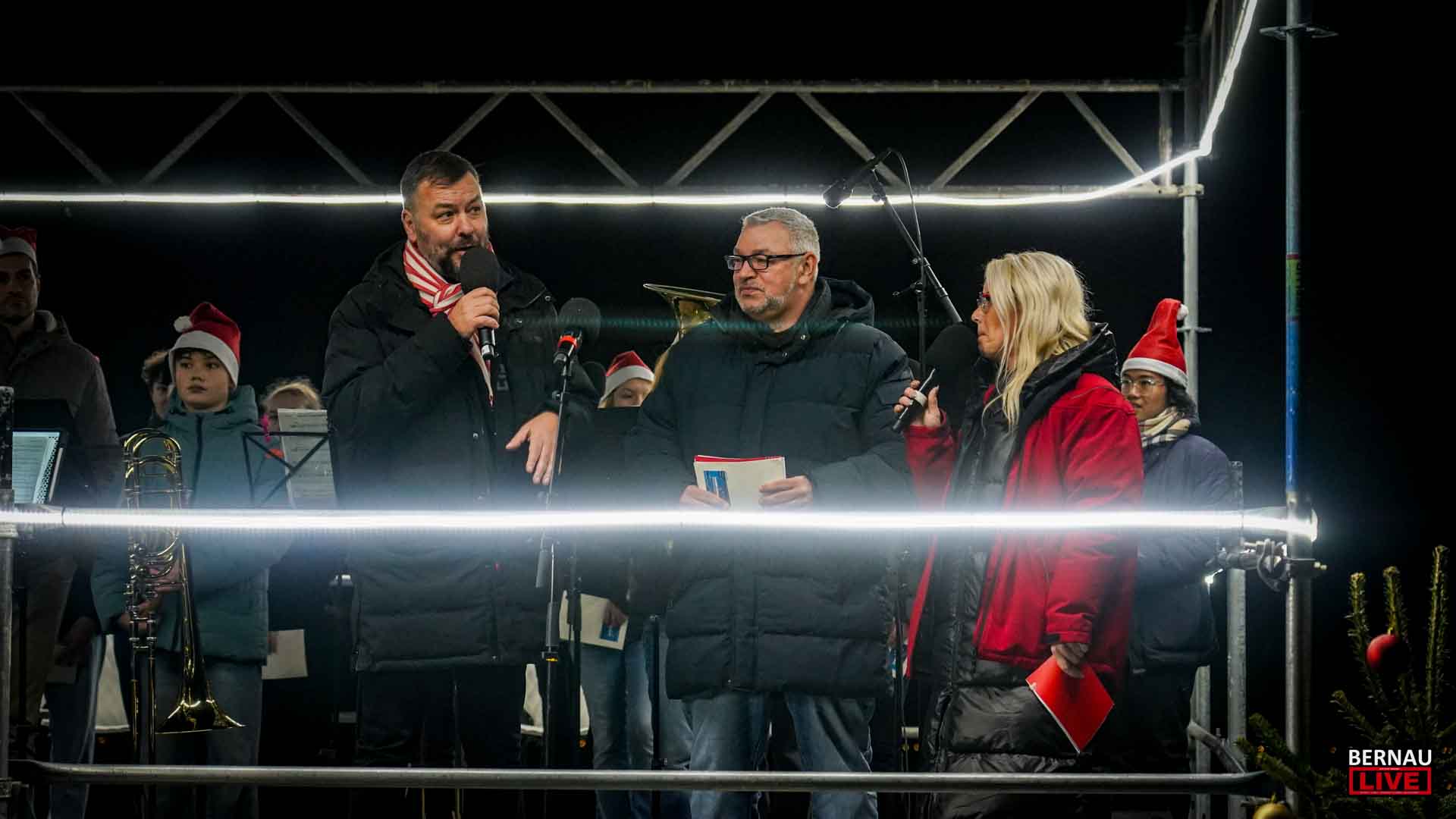 Während Moderatorin Clara Himmel durch den Abend führt und Clemens Pfütz als stellvertretender Bürgermeister alle Gäste herzlich begrüßte, geben die Chöre der beiden Bernauer Gymnasien und eine Bläsergruppe den festlichen Ton an.